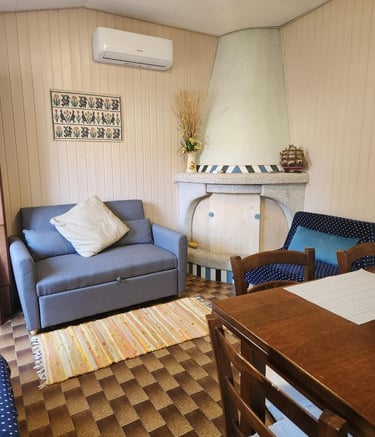 Cozy apartment located in a small and calm village located on a hill 20 minutes away from the beaches and the mountains.